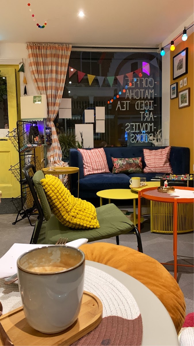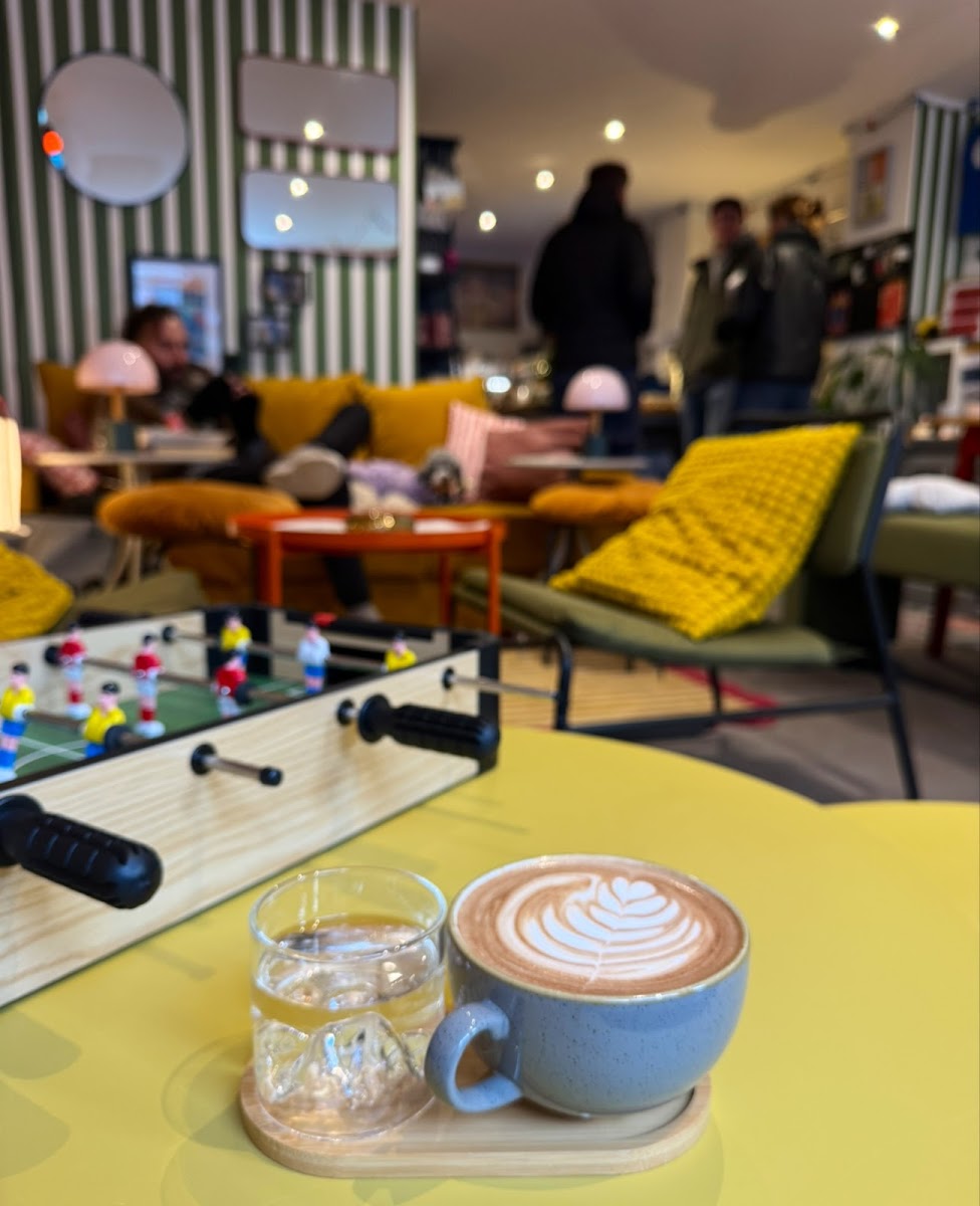 The atmosphere here settles into a calm, softly furnished space where contemporary coffee roasting meets a quirky yet comfortable vibe. Visitors often find themselves lingering over drinks like iced matcha lattes — crafted with care and attention to detail — while taking in the gentle hum of quiet conversation and the occasional shuffle of vintage board games or the click of old typewriters that decorate the room.